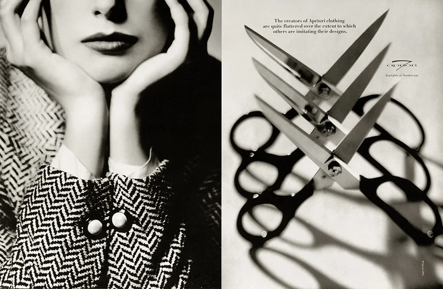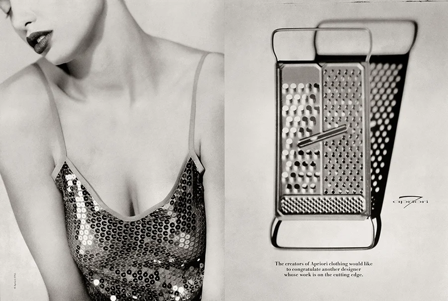 Escada created a line of lower cost, everyday wear called Apriori. It had no name recognition with retailers or consumers. They wanted to get attention and get into retailers' stores and women's closets. With tongue firmly planted in cheek, we created a series of ads that suggested the entire world of all every day products were ripping off Apriori designs. Even Slinky.