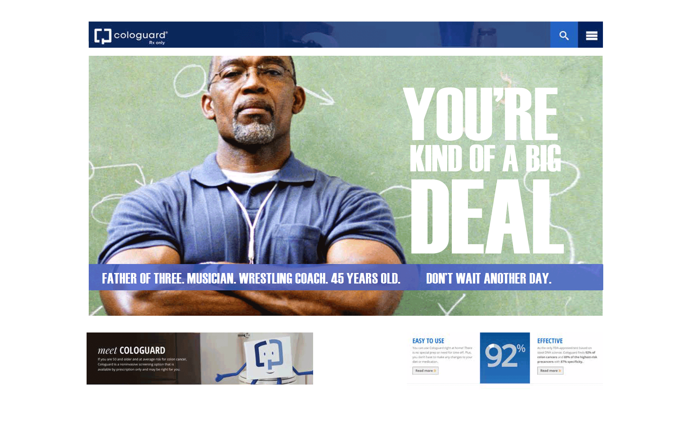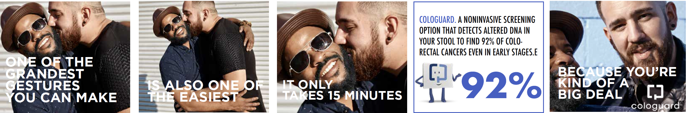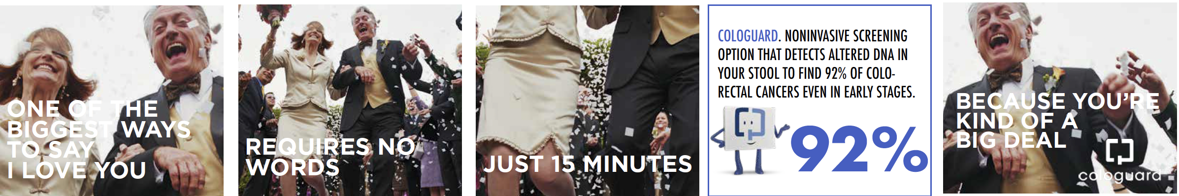 The assignment was to come up with a new 360 campaign approach for Cologuard to motivate those 45+ to get screened for colon cancer, incorporating the Cologuard box character wthin the concept. (The age recommendation for colon cancer screening for people of average risk had recently been lowered from 50+ to 45+.)